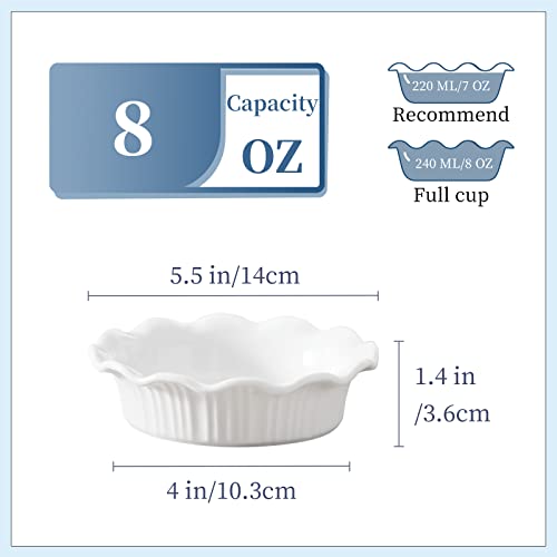 LOVECASA 8 OZ Ceramic Mini Pie Pans, 5.5 Inches Small Pie Dishes Ramekins with Ruffled Edge, Baking Pie Plates for Apple Pie, Quiche, Pot Pies, Tart, Oven and Microwave Safe, White, Set of 6