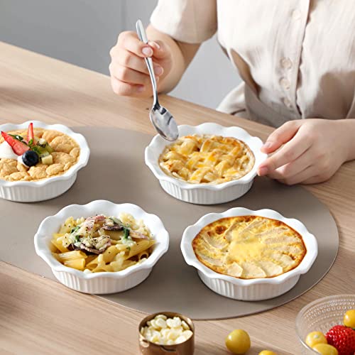 【PERFECT SIZE FOR INDIVIDUAL SERVING】 LOVECASA round mini ramekins with 5.5 inches in diameter, 1.4 inches in depth are perfect for preparing and serving individual portions of a variety of delicious meals and desserts. The height and thickness of the sidewalls make pie crusts bake evenly. Super cute on any kitchen shelf and very durable.