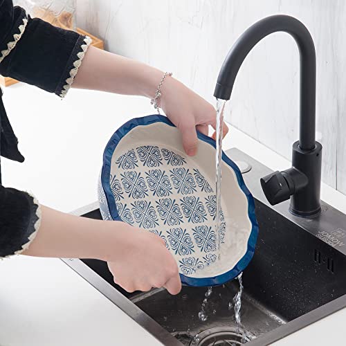 【CONVENIENT CLEANING】 Whether you want to clean the pie dish by hand or with your dishwasher, it won’t matter because the smooth porcelain texture makes cleanup a breeze. and It is suitable for microwave, freezer and oven.