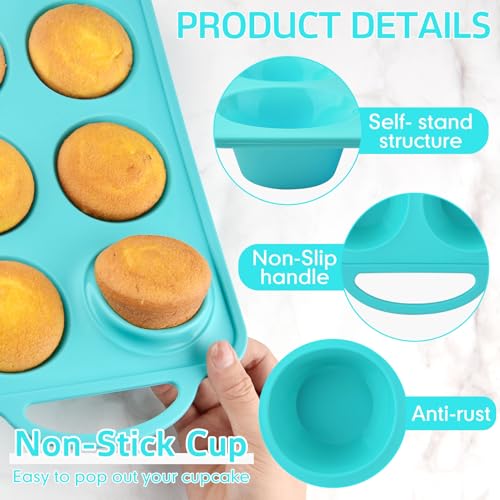 3 Pieces Silicone Cupcake Pan with Metal Frames 6 Cups Silicone Muffin Pans Nonstick Cupcake Baking Mold Silicone Muffin Tray Mini Muffin Pan Muffin Tin for Making Muffin Cupcake Tart (Green)