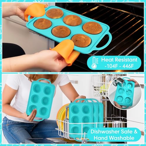 Non Stick and Easy to Put: our silicone muffin tray have a non-stick surface, just press the silicone cupcake pan up from the bottom of the cup, and your muffins will pop out of the large non-stick muffin pan, making baking easy and bringing you a great baking experience
