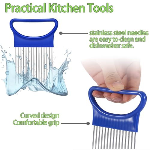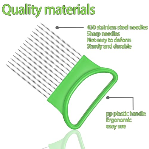 FANTEXY 3Pcs Onion Holder for Slicing, Stainless Steel Onion Cutter for Slicing, Potato Lemon Slicer Tomato Slicers Kitchen Comb for Vegetables, Fruit and Meat