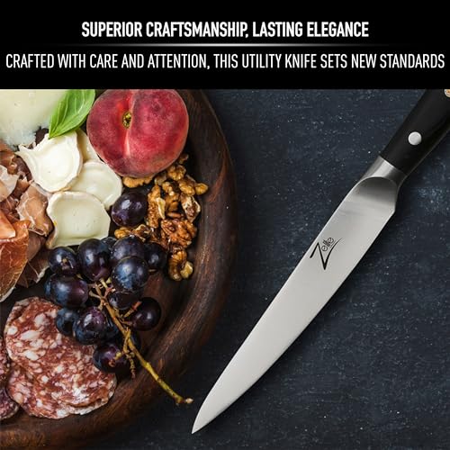 Zelite Infinity Utility Knife Kitchen, 6 Inch Chef Knife, Chopping Knife, Kitchen Utility Knife, Knife Kitchen Utility – German High Carbon Stainless Steel – Pakkawood Handle – Leather Sheath