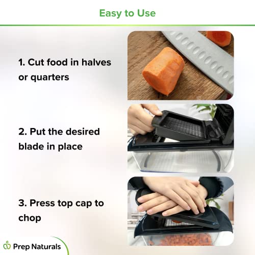PrepNaturals Vegetable Chopper with Container, Veggie Chopper – Chopper Vegetable Cutter, Food Chopper & Onion Chopper – Onion Chopper Dicers, Choppers, Mandoline Slicer for Kitchen (2-in-1 Black)
