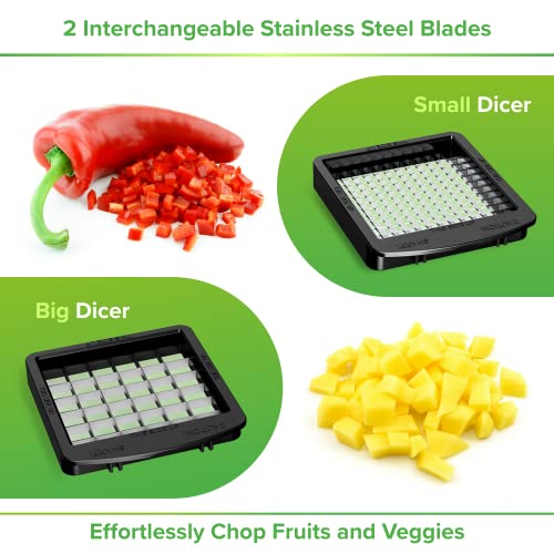 High-Quality Stainless Steel Blades – Our essential salad chopper includes our 2 most popular blades so you can tackle any dish. Made of 301EH stainless steel, this food dicer’s blades will last for ages without losing its sharp edge.