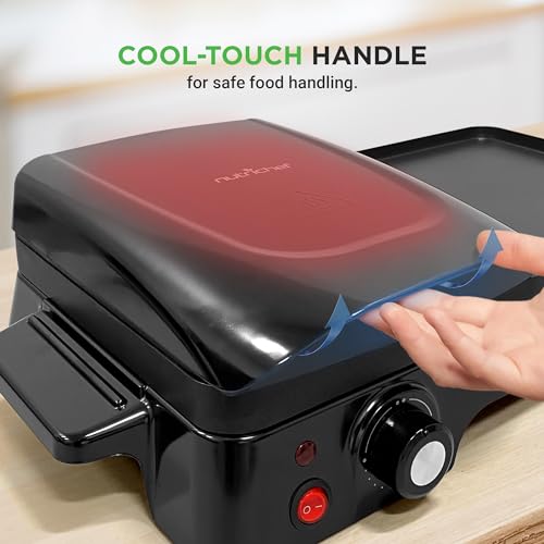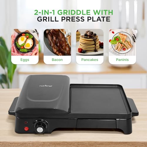 Nutrichef 3-in-1 Grill, Griddle, & Panini Press – Nonstick Coating, Temperature Control – Multiuse Countertop Sandwich Maker – Removable Drip Tray – 1500W – Compact Griddle – 20.3 x 12.5 x 5.3, Black