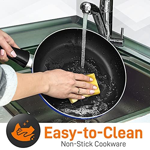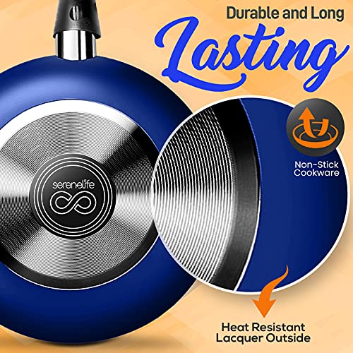 SereneLife Kitchenware Pots & Pans Basic Kitchen Cookware, Black Non-Stick Coating Inside, Heat Resistant Lacquer (6-Piece Set), One Size, Blue