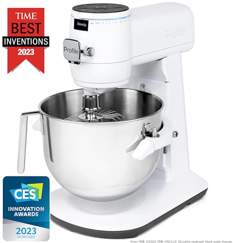 GE Profile Smart Stand Mixer w/Built-In Smart Scale & Auto Sense Technology, 7qt Stainless Steel Bowl, 11 Speed l Dough Hook, Beater, 11-wire whip l works w/Amazon Alexa & Google Home l Stone White