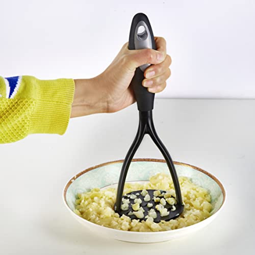 KSENDALO Multifunctional Kitchen Cooking Tool – Potato Masher, Avocado Masher, Bean Masher – Nonstick Degradable Nylon Blade with Comfortable Rubber Wrapped Handle, Degradable Nylon Blade, Black