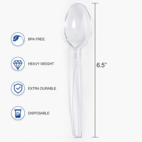 [100 Count] Clear Plastic Spoons Heavy Duty, Premium Disposable Spoons, Durable Plastic Cutlery for for Parties, Picnics, Big Event, Daily Use – Heat Resistant & BPA Free – Clear