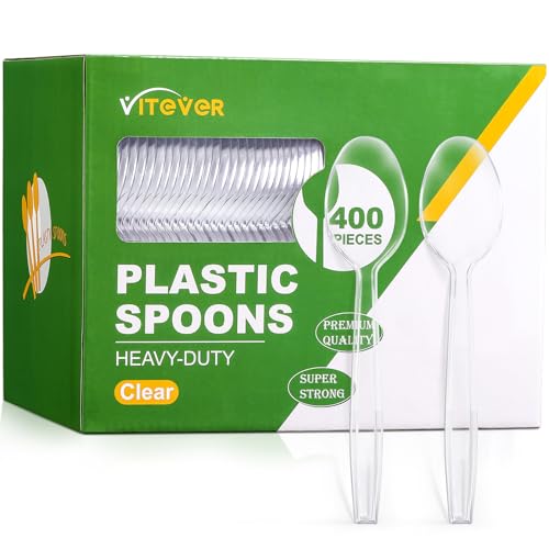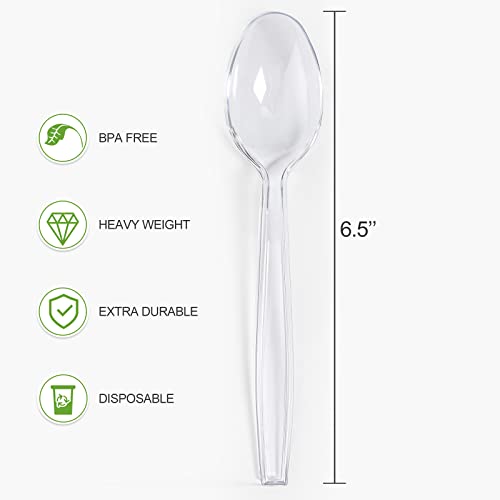 [400 Count] Heavy Duty Plastic Spoons, Premium Disposable Spoons, Durable Plastic Cutlery for for Parties, Picnics, Big Event, Daily Use – Heat Resistant & BPA Free – Clear