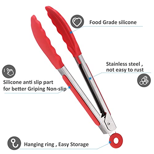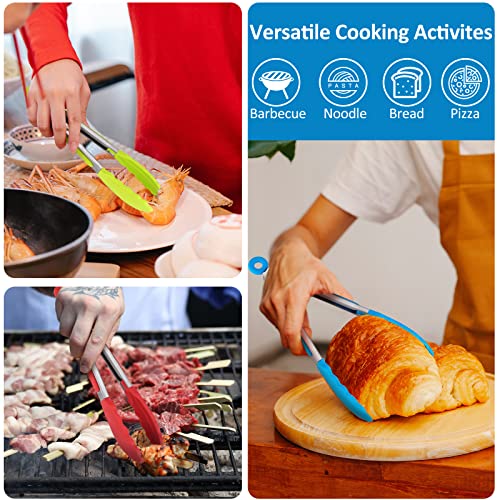 Small Tongs For Cooking,7 inch Kitchen Mini Tongs with Silicone Tips Great for Air Fryer Cooking Serving Tong Set of 3 Turning Appetizers,Veggies,Salad,Grilling,Frying,Food tong (Red Blue Green)